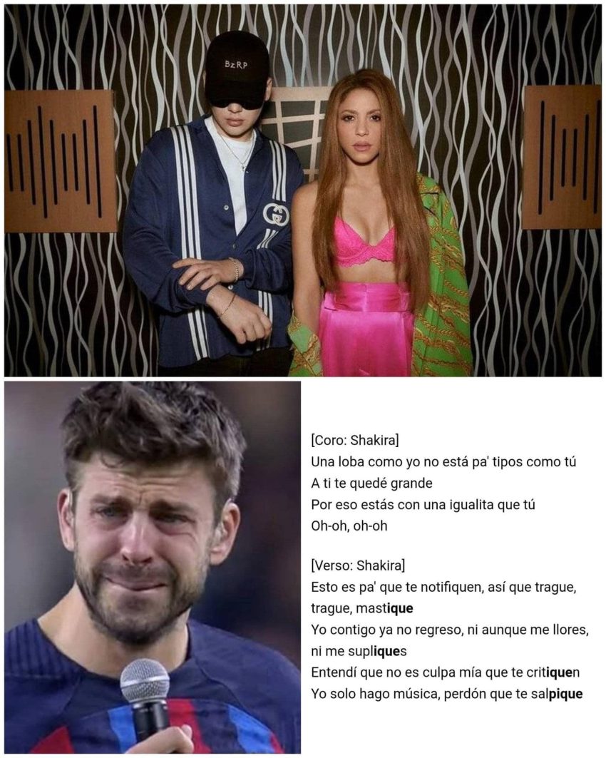 Al conocerse la letra completa de la canción, resaltan algunos versos en los que la barranquillera lanzaría indirectas a su expareja, el exdefensor del Barcelona, del que aprovecha su apellido para convertirlo en un recurrente juego de palabras