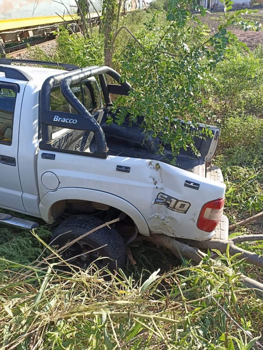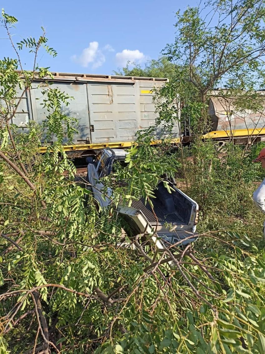 Aparentemente la camioneta Chevrolet S10, manejada por un hombre de 63 años, intentó cruzar las vías sin percatarse de la cercanía de la formación ferroviaria que la embistió en la parte trasera.