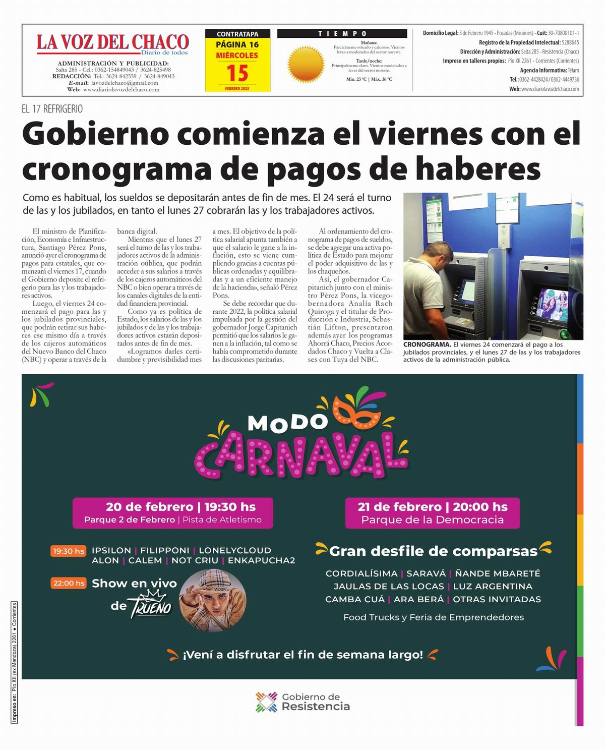 Portada » Tapa y Contratapa 15 de febrero de 2023