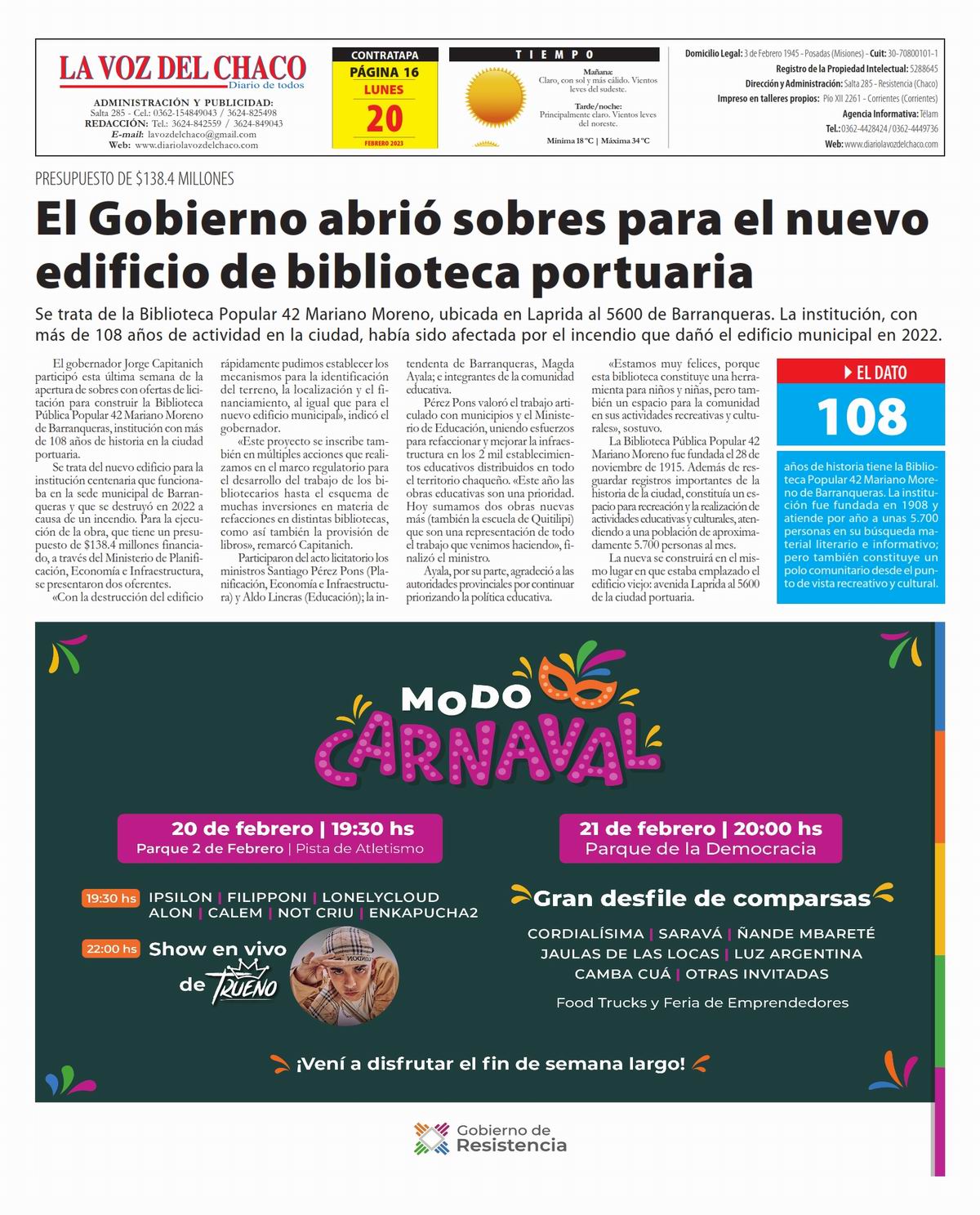 Portada » Tapa y Contratapa 20 de febrero de 2023