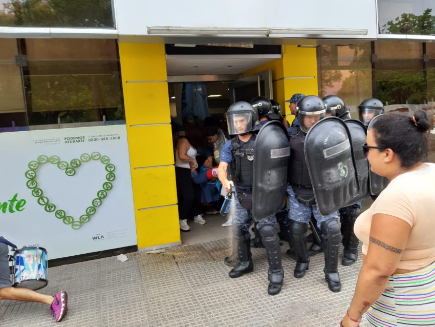 Efectivos de Infantería de la Policía cubrieron la puerta del edificio y luego de algunos forcejeos lograron controlar la situación.