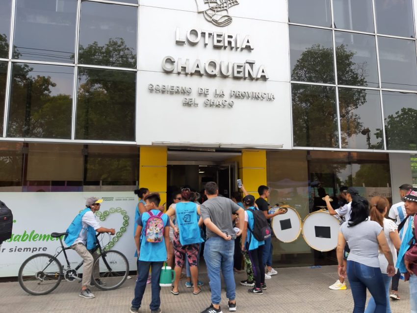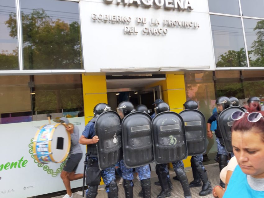 Un grupo de manifestantes intentó tomar la sede de la Lotería Chaqueña durante la mañana de este miércoles, pero la Policía del Chaco se lo impidió y logró desalojarlos del lugar.