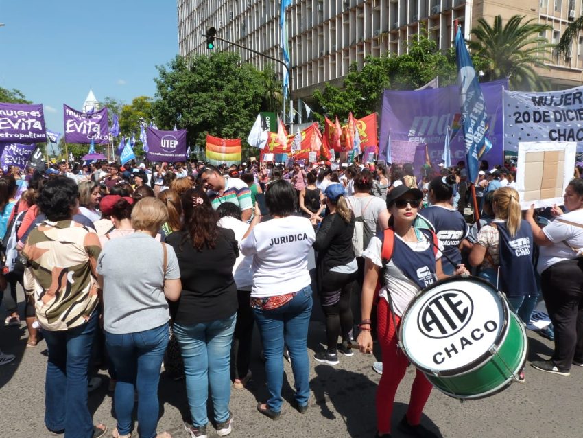 En esta edición, la Multisectorial Feminista Chaco destacó “la unidad de les trabajadores por una Argentina democrática y feminista para no retroceder” como el camino de lucha.