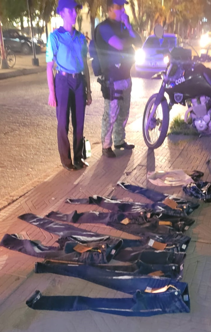 Seguidamente, con las características aportadas por el personal del local, los agentes en cercanías de la zona dieron con una mujer de 50 años, que tenía en su poder siete jeans, que fueron secuestrados. Esta pretendía tomar un remís, pero fue demorada, por calle José María Paz.