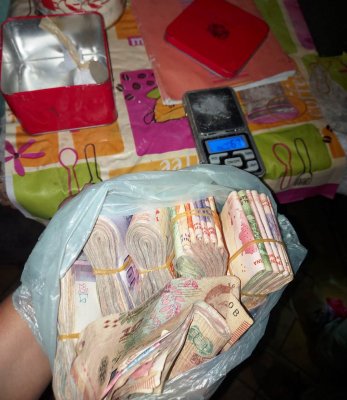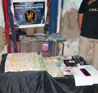 En una de las habitaciones hallaron el bunker, donde al parecer, preparaba todo para la venta de estupefacientes. Hallaron 14 envoltorios que contenían 11.5 gramos de cocaína, un envoltorio con 1 gramo marihuana, recortes de polietileno, un plato y una tarjeta con restos de estupefacientes, una balanza de precisión. Además, secuestraron un teléfono celular, la suma de $171.760 pesos y una motocicleta 110 cc.