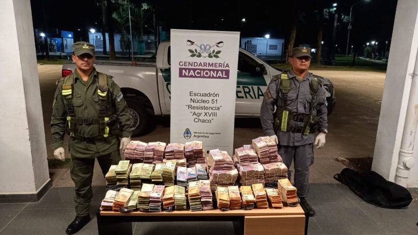 Los gendarmes detectaron los billetes de moneda nacional en el bolso de un pasajero mayor de edad.