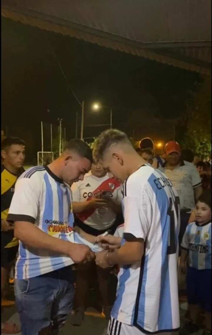 Es que, licenciado por River por unos días debido a su participación en el Sudamericano Sub 17, el Diablito pasó esta última semana en Chaco y causó un caos organizado en plena calle: con la camiseta de la Selección puesta, le dedicó varios minutos a firmarles autógrafos y sacarse fotos con los cientos de fanáticos que se acercaron hasta la zona donde estaba. Las caras de felicidad de niños y grandes por conocer a este crack que promete un gran futuro demostraban el orgullo que sienten por tener a un hijo pródigo que será de élite más pronto que tarde.