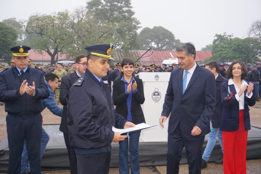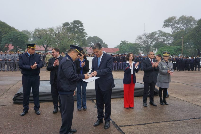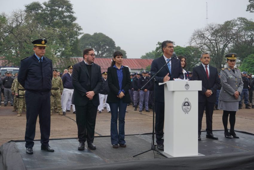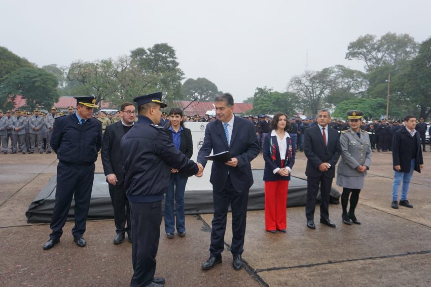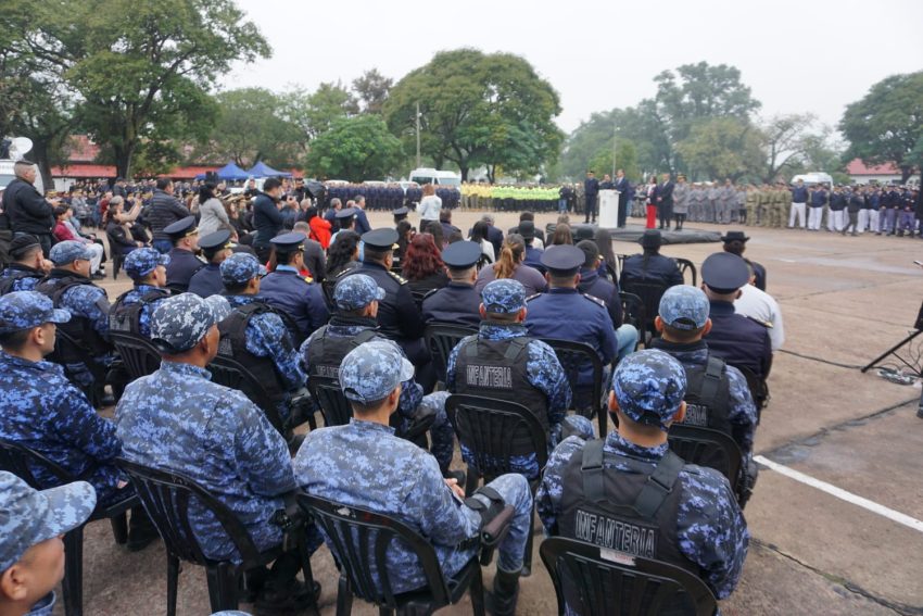 El mandatario, también indicó que «generamos el ascenso al mérito extraordinario de 98 agentes por las funciones realizadas en el control territorial de disturbios en Nueva Pompeya. Agentes que hoy tienen un reconocimiento por el desempeño de sus actividades y a quienes felicitamos por su coraje y por su actuación para evitar un conflicto mayor».