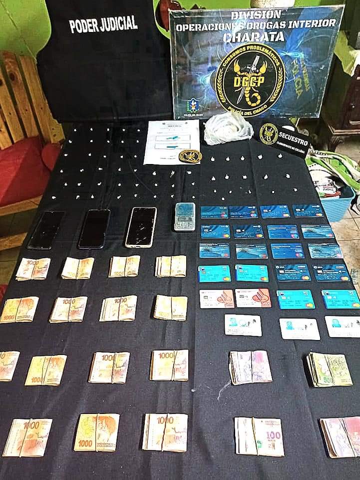 La Policía del Chaco realizó el jueves tres allanamientos en viviendas de la localidad de Charata, donde secuestraron droga, dinero en efectivo y gran cantidad de tarjetas de débito que le fueron retenidas a personas que solicitaron préstamos. Además, fueron detenidas cinco personas.