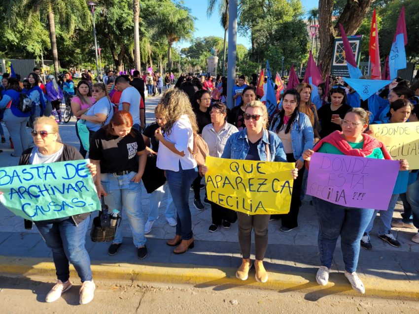 Durante la mañana de este viernes, de realizó una manifestación en inmediaciones de la plaza 25 de Mayo para pedir por la aparición de Cecilia Strzyzowski, la joven de 28 años de la que nada se sabe desde hace ocho días.