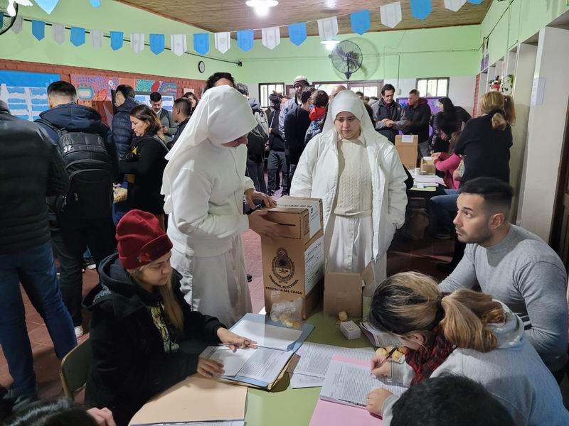 • Dos monjas aguardan pacientemente para emitir su sufragio durante la jornada de votación en Resistencia.