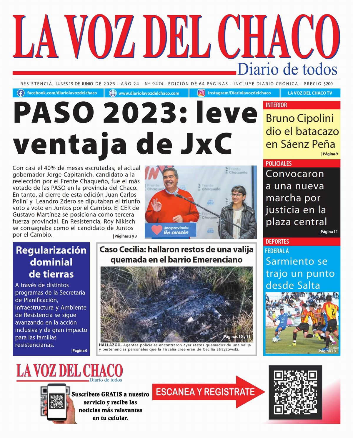 Portada » Tapa y Contratapa 19 de junio de 2023