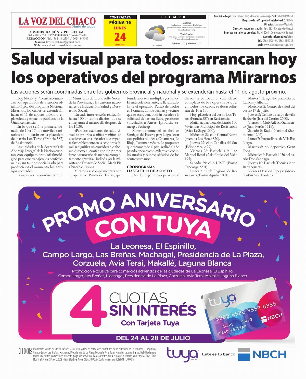 Tapa y Contratapa 24 de julio de 2023
