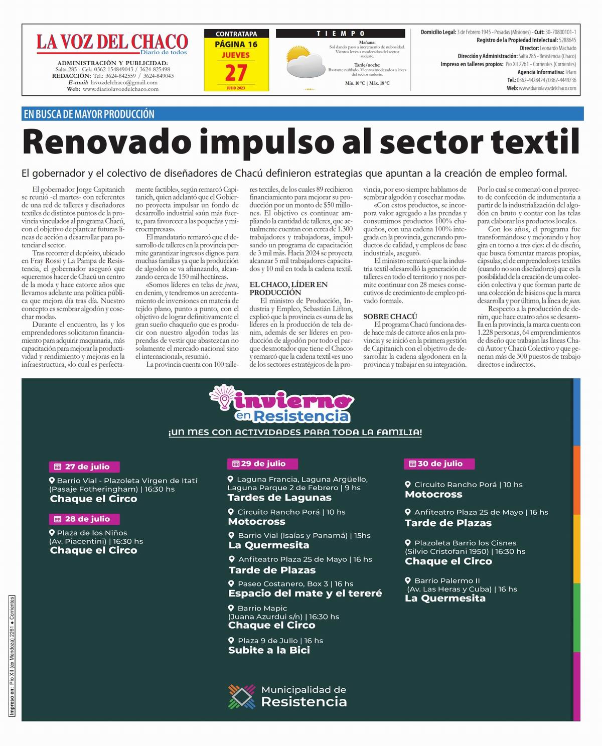 Tapa y Contratapa 27 de julio de 2023