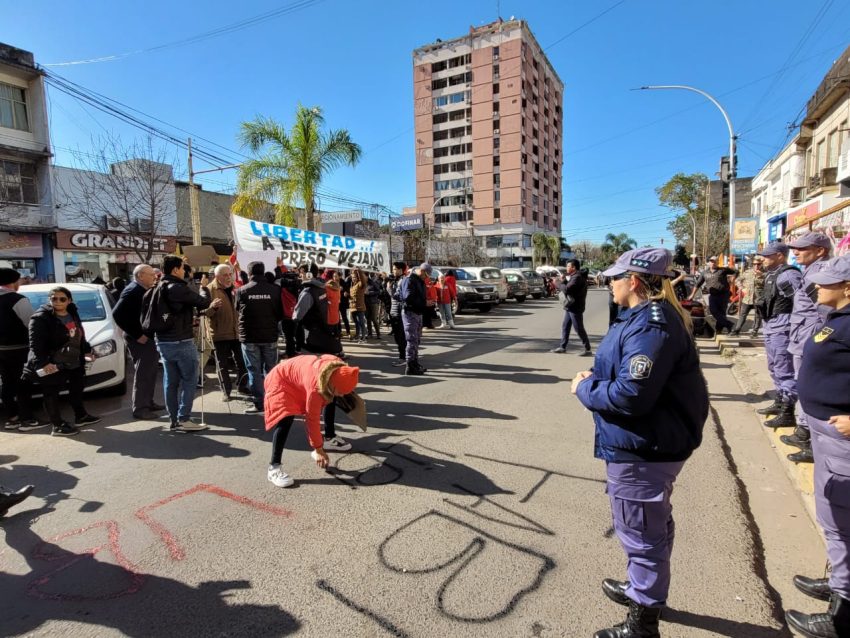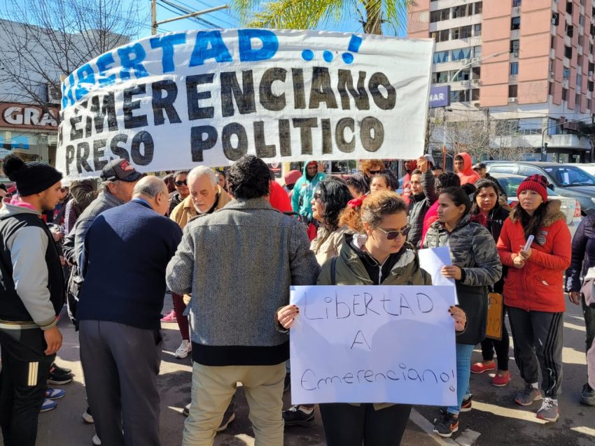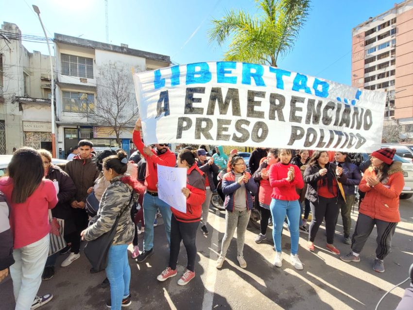 Gloria había ido a la sede judicial tras ser citada por los fiscales para ser informada sobre el avance de la causa y fue allí que se encontró con un grupo de unas pocas decenas de personas que pedían la libertad de Emerenciano.