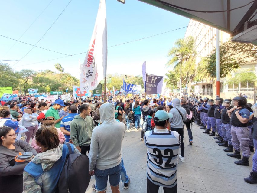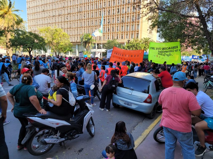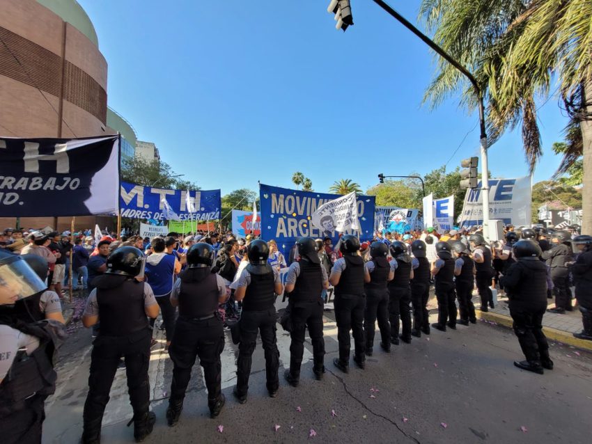 Centenares de personas pertenecientes a movimientos sociales volvieron a manifestarse durante la mañana de este martes, frente a la Casa de Gobierno de la provincia.