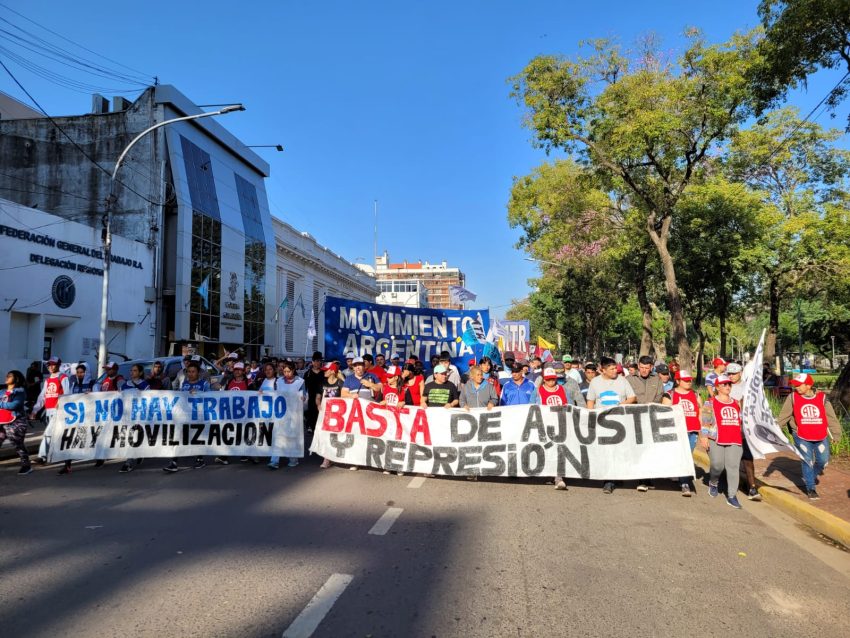 La movilización se realizó protestando con los clásicos pedidos de ayuda social y trabajo, pero también se sumó como motivo el rechazo al accionar policial que la semana pasada dispersó una manifestación similar en el mismo lugar.