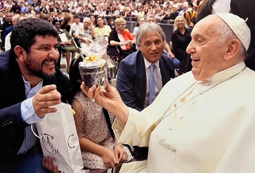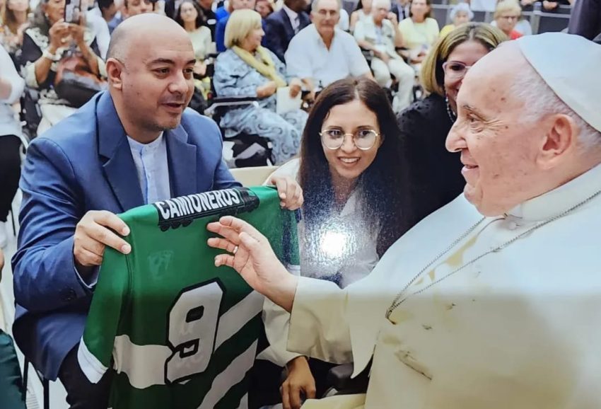 “Nos comparten con estas imágenes la alegría inmensa de este momento y nos traen las bendiciones para todos compañeros que pertenecemos al Sindicato”, rezan las redes del gremio que difunde foto de los gremialistas con el Papa.