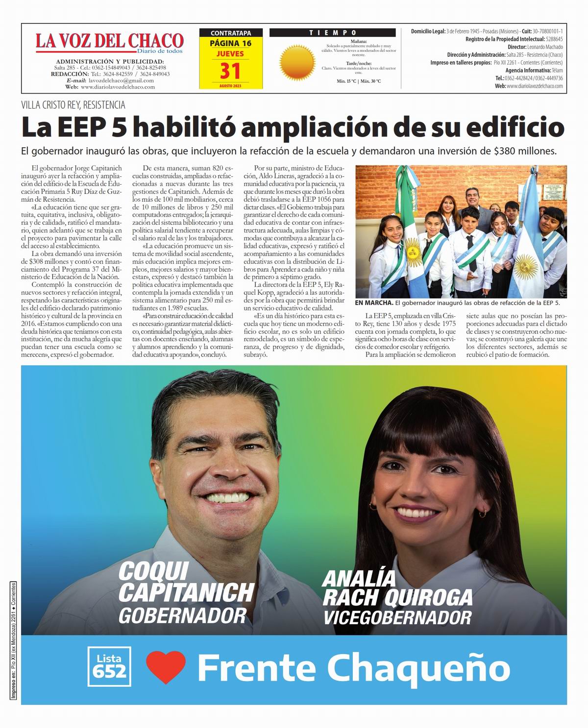 Portada » Tapa y Contratapa 31 de agosto de 2023