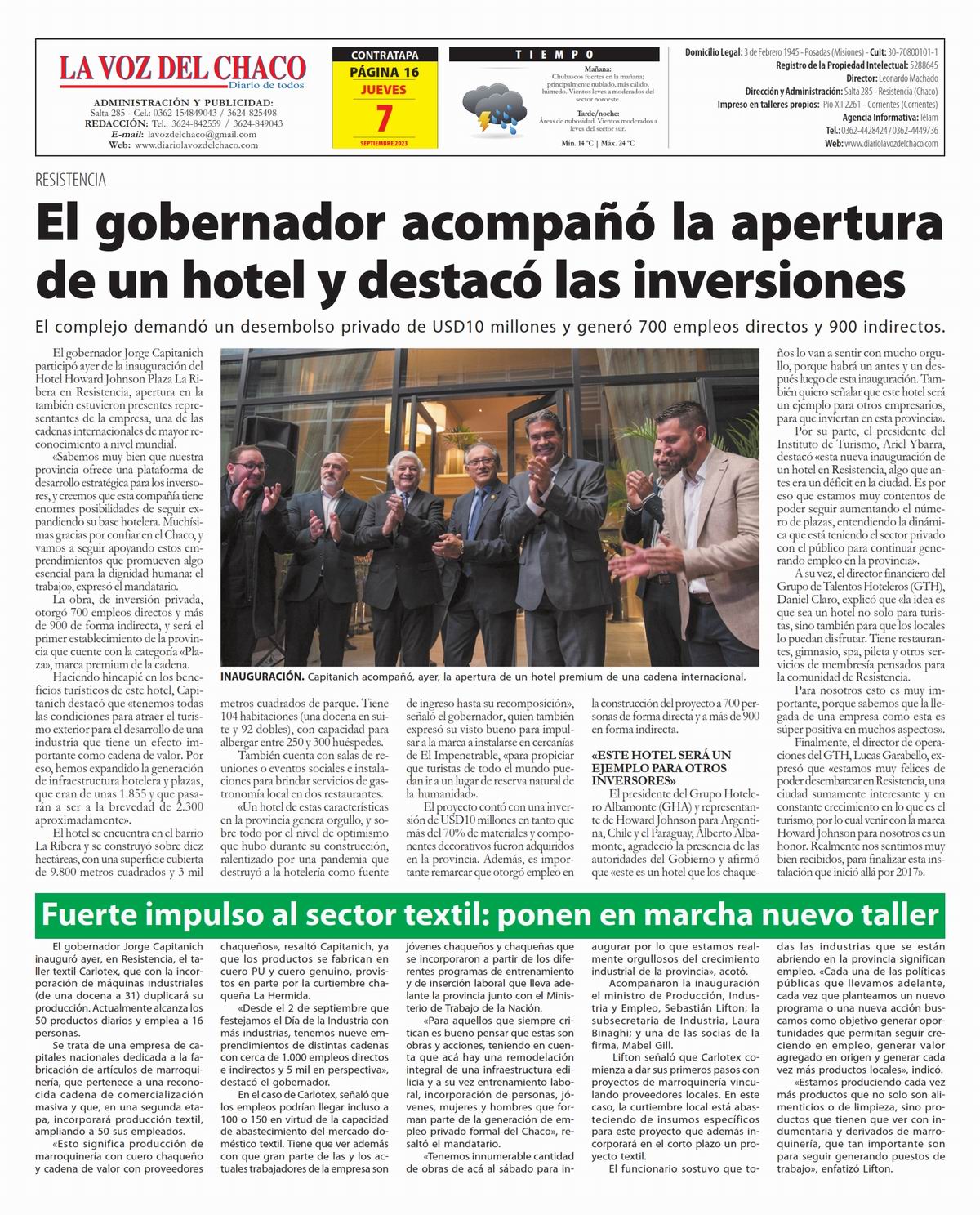 Tapa y Contratapa 7 de septiembre de 2023