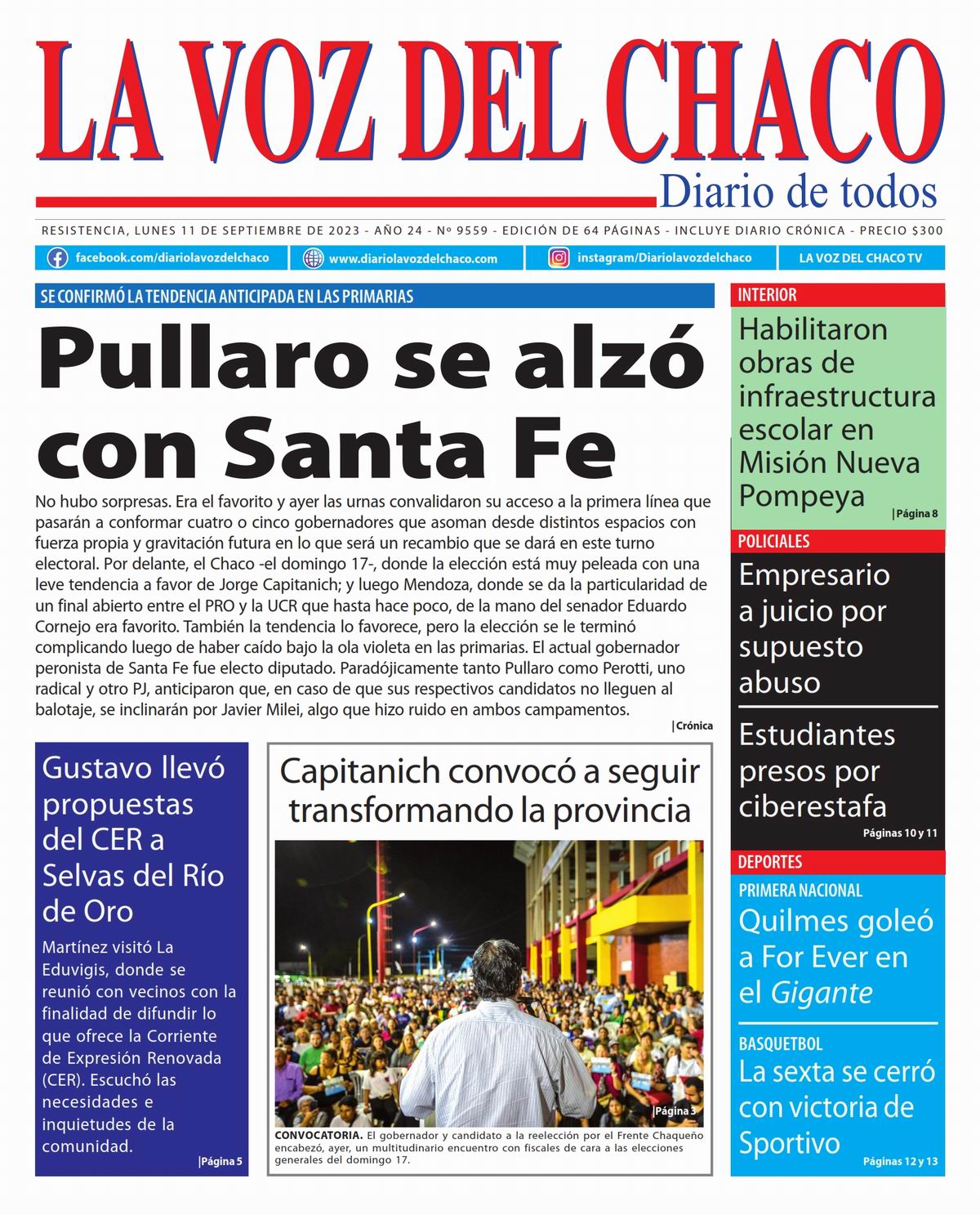 Tapa y Contratapa 11 de septiembre de 2023