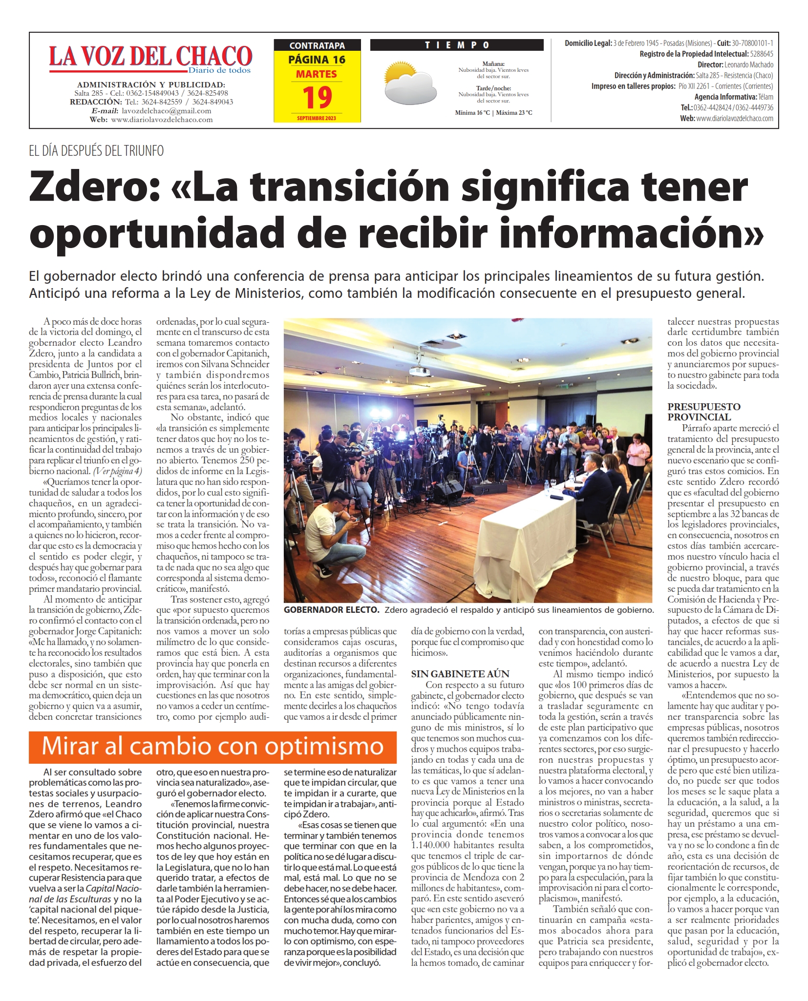 Tapa y Contratapa 19 de septiembre de 2023