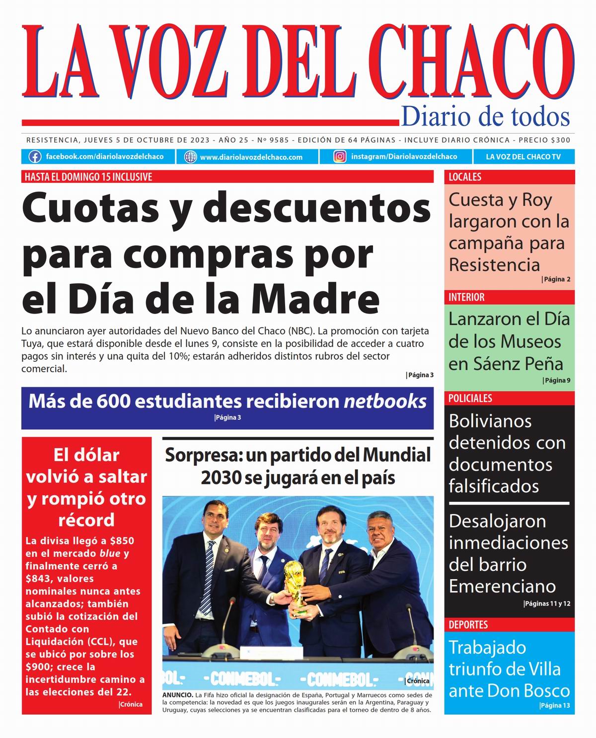 Tapa y Contratapa 5 de octubre de 2023