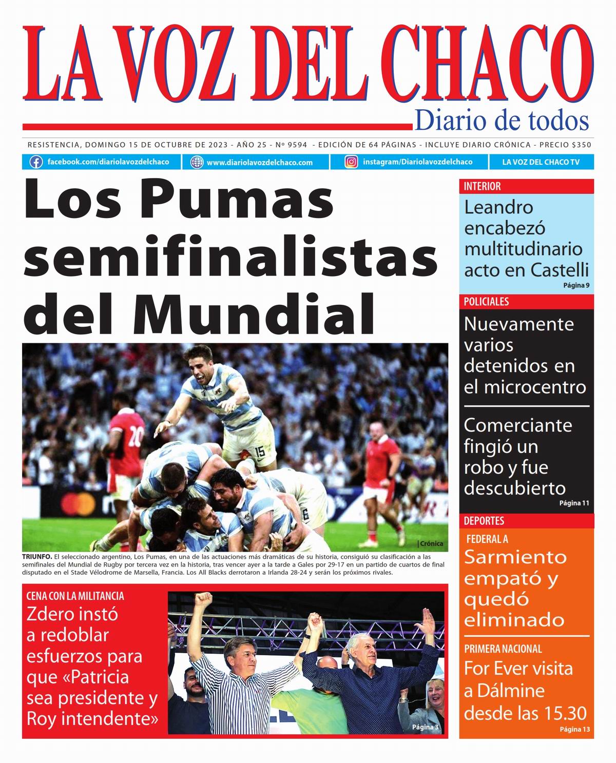 Portada » Tapa y Contratapa 15 de octubre de 2023