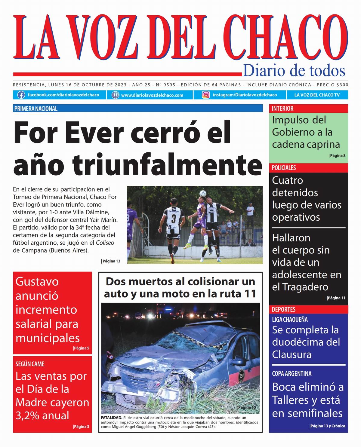 Tapa y Contratapa 16 de octubre de 2023