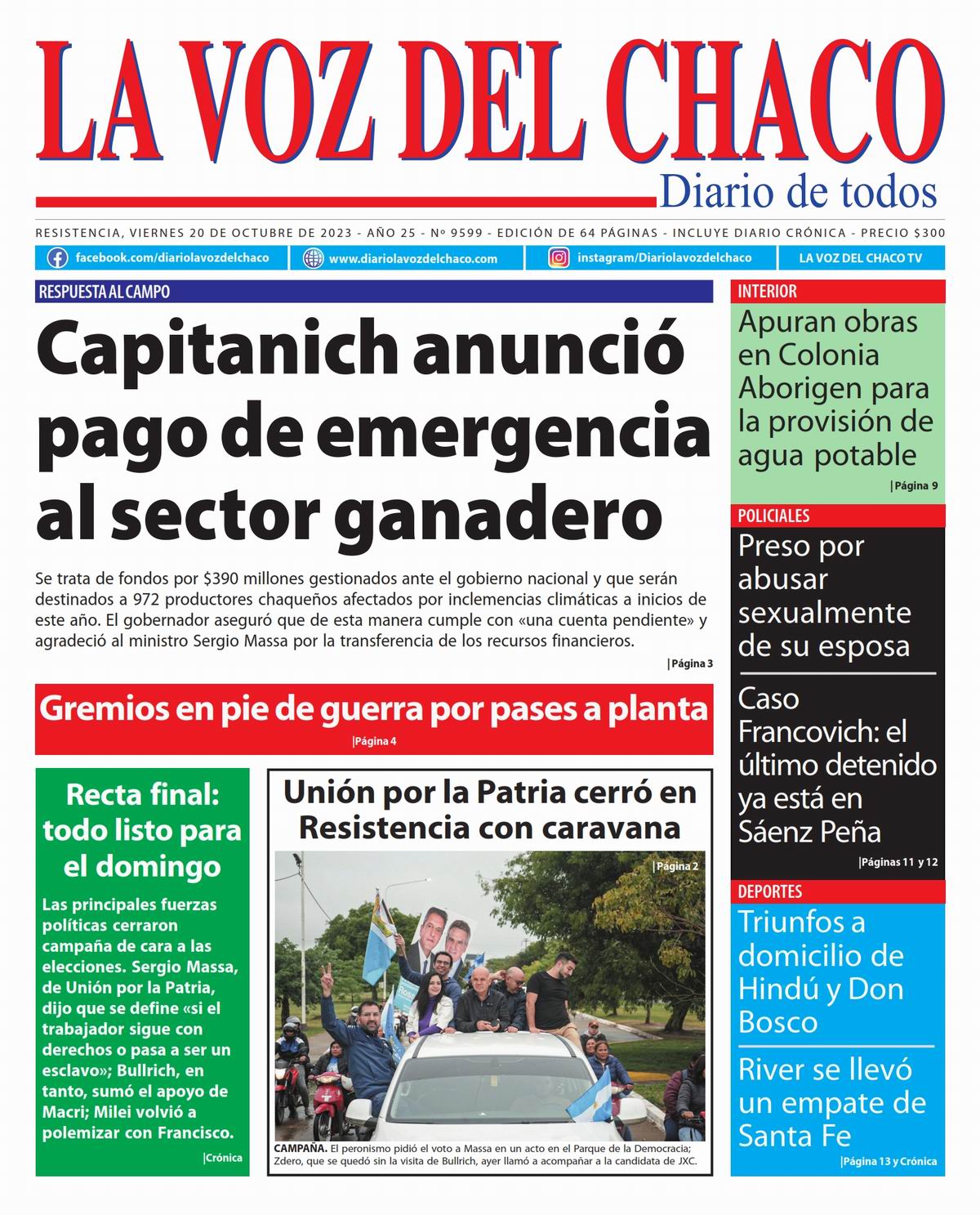 Tapa y Contratapa 20 de octubre de 2023