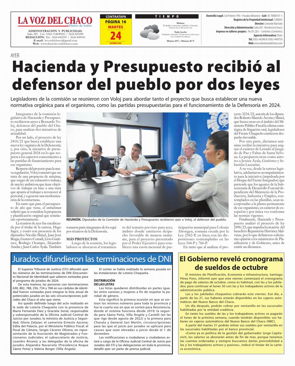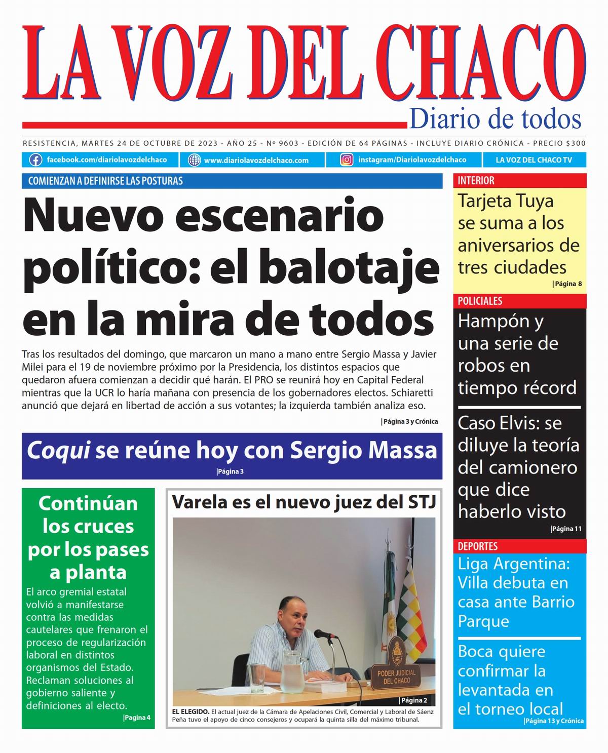 Tapa y Contratapa 24 de octubre de 2023