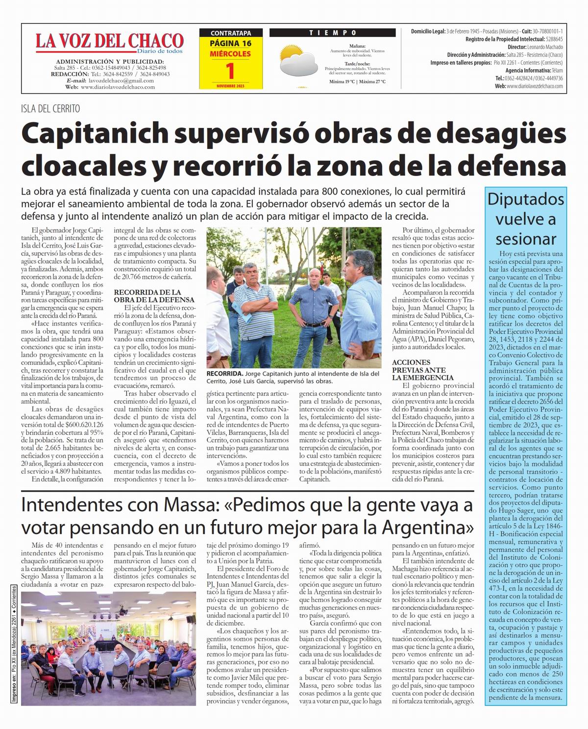 Tapa y Contratapa 1 de noviembre de 2023