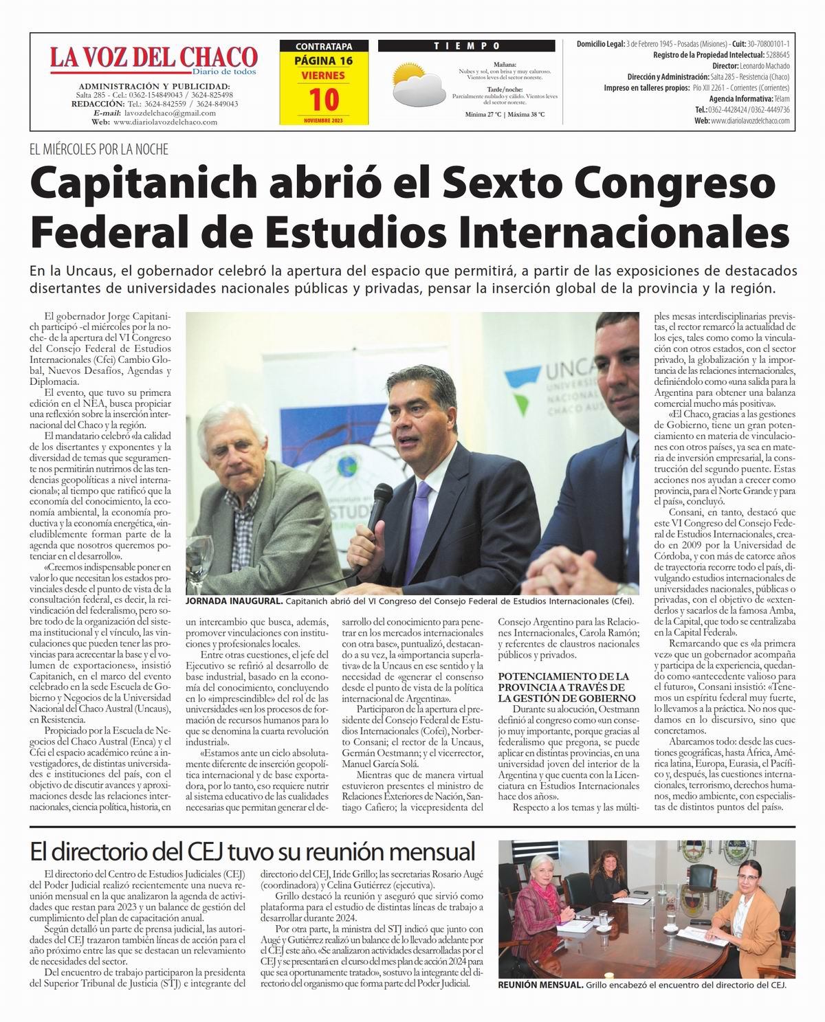 Tapa y Contratapa 10 de noviembre de 2023