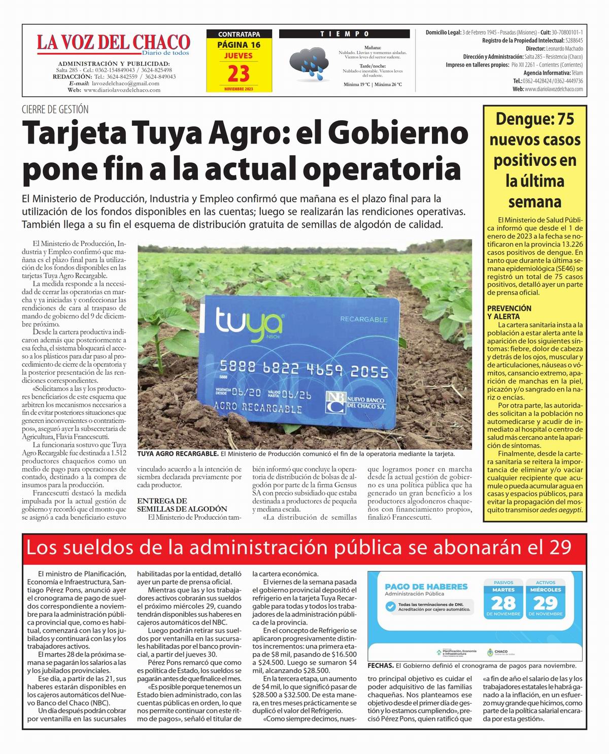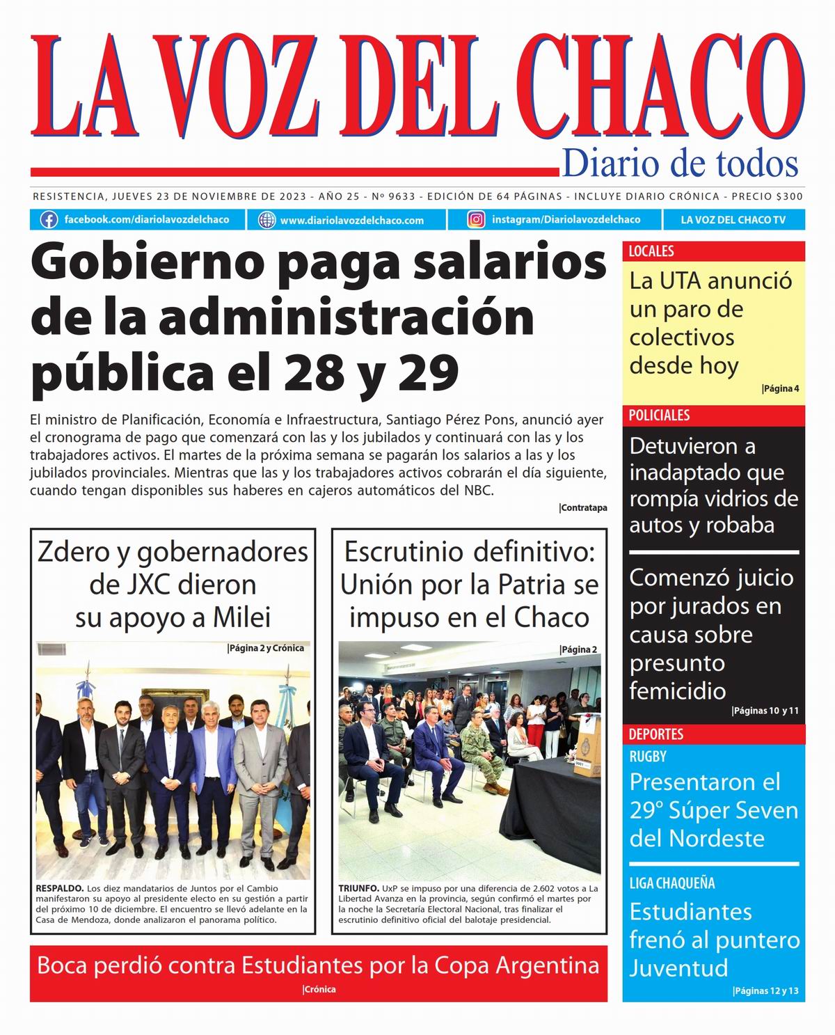 Tapa y Contratapa 23 de noviembre de 2023