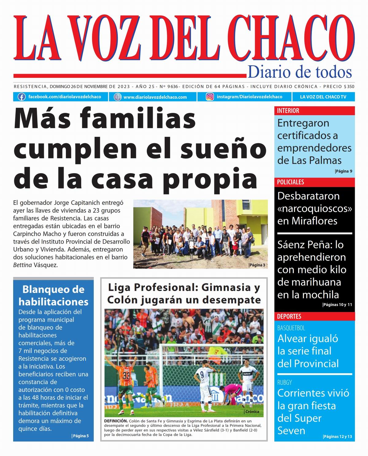 Tapa y Contratapa 26 de noviembre de 2023