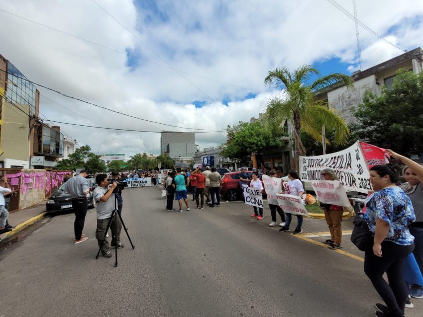 Mientras tanto, un nutrido grupo de mujeres y manifestantes con pancartas y carteles rosa se congregan frente a la sede judicial, para continuar reclamando el esclarecimiento del caso.