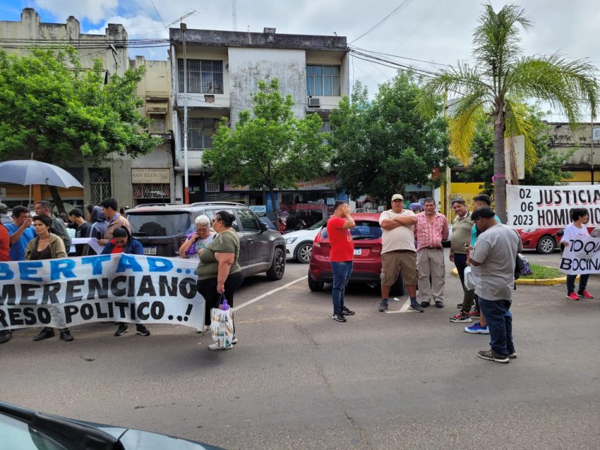 Pasadas las 9 de la mañana otro grupo de manifestantes, esta vez en apoyo a Sena, llegó hasta el lugar también con pancartas que rezaban “Libertad a Emerenciano”, al que califican como “preso político” y acompañados por el referente Tito López.