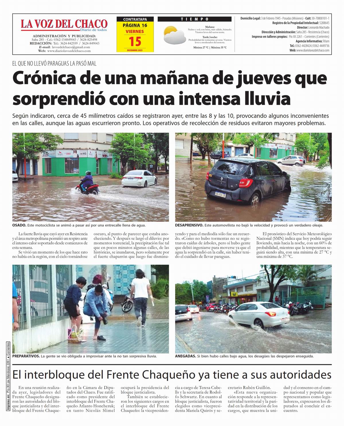 Lluvias intensas en Chaco: Presidencia Roca llegó a 80 mm y Resistencia acumuló 74 mm
