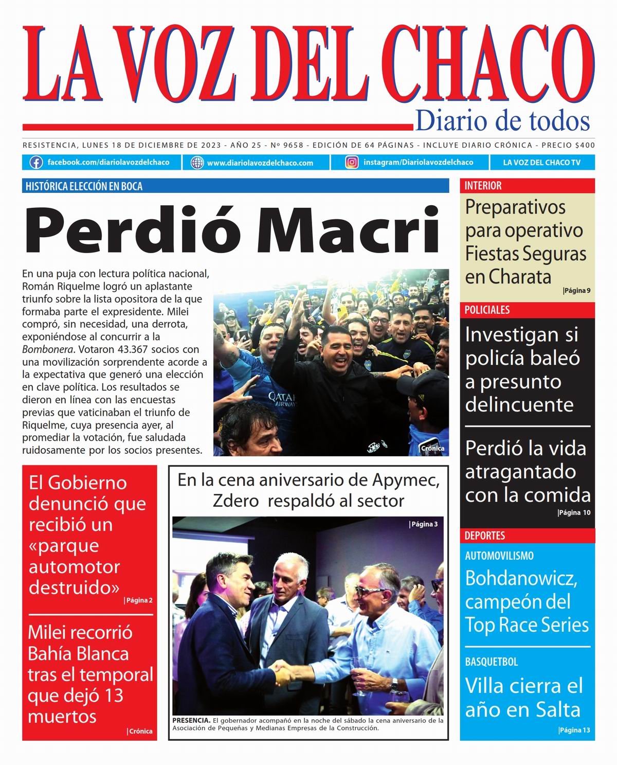 Tapa y Contratapa 18 de diciembre de 2023