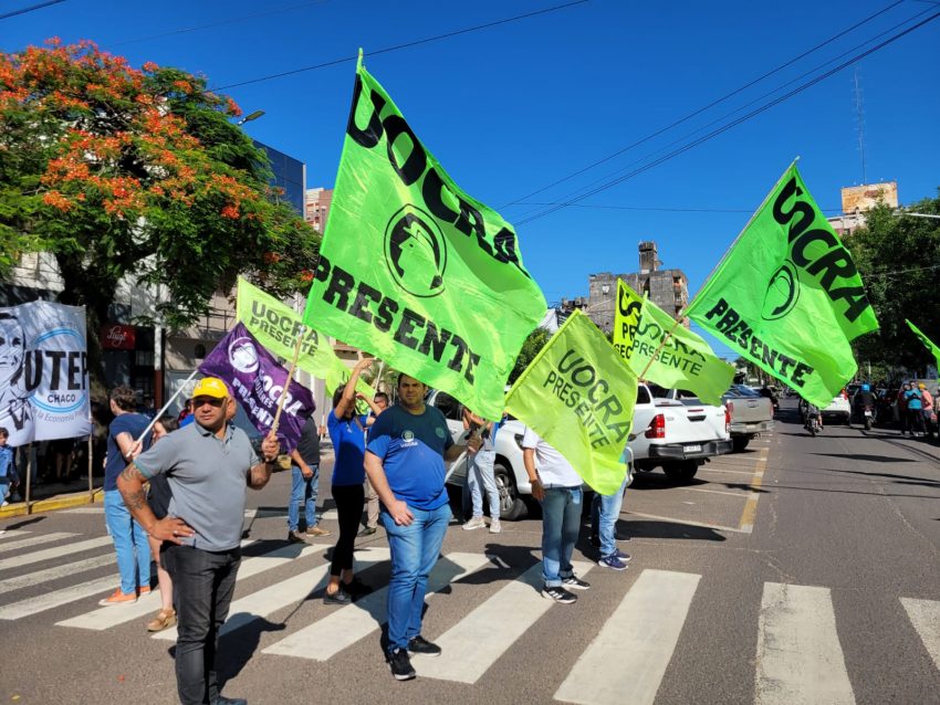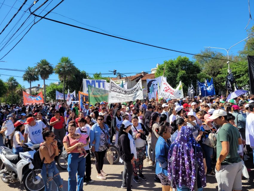 En Resistencia, se congregaron para marchar centenares de personas identificadas con banderas y pecheras de diferentes organizaciones sindicales y piqueteras.