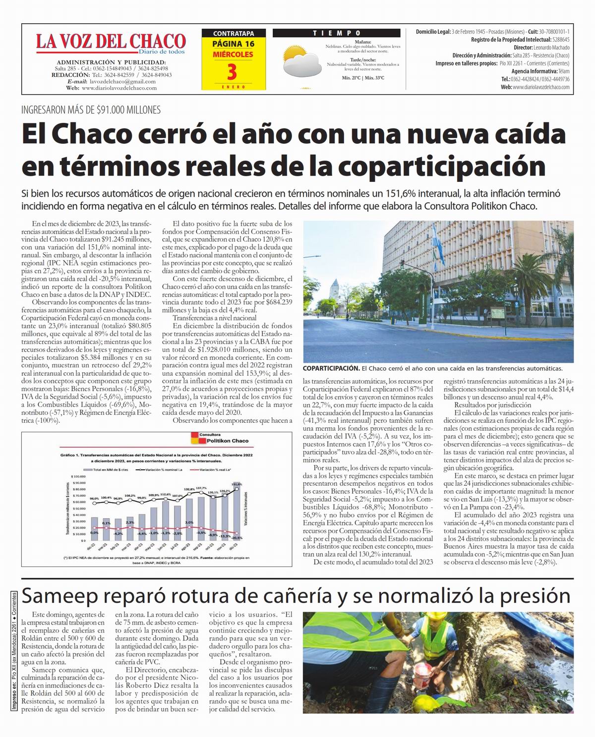 Portada » Tapa y Contratapa 3 de enero de 2024