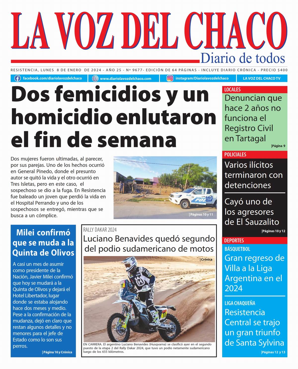 Tapa y Contratapa 8 de enero de 2024