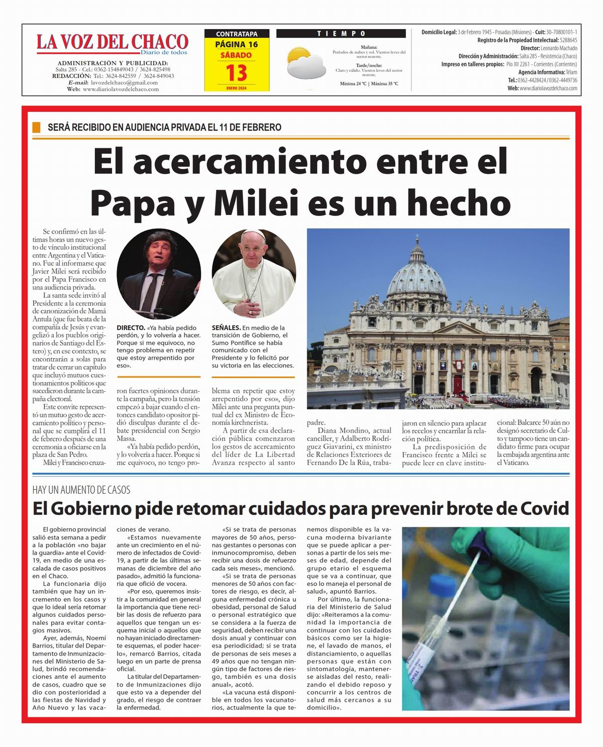 Tapa y Contratapa 13 de enero de 2024