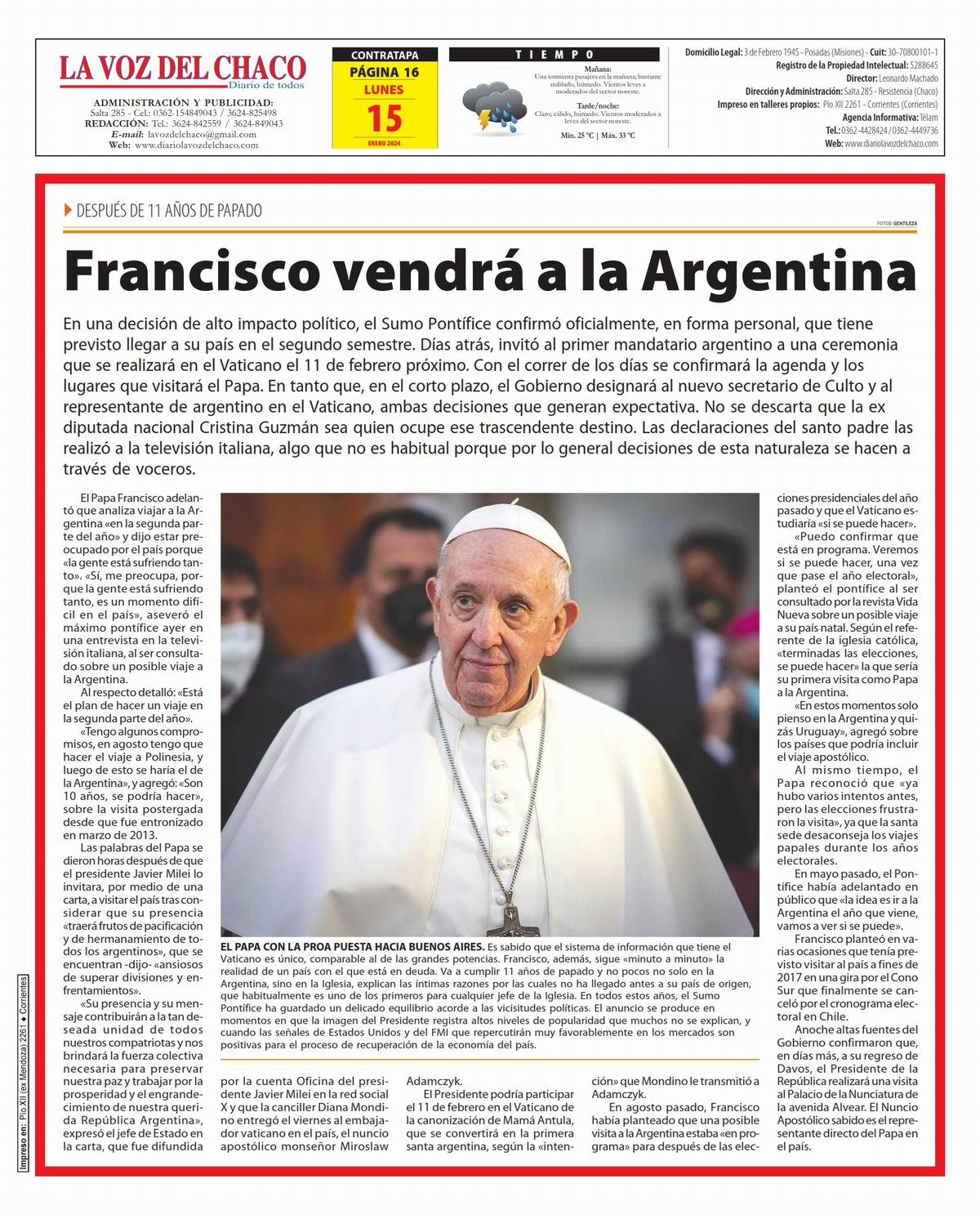 Portada » Tapa y Contratapa 15 de enero de 2024