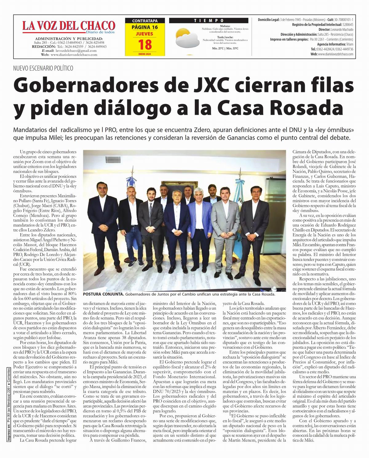 Tapa y Contratapa 18 de enero de 2024