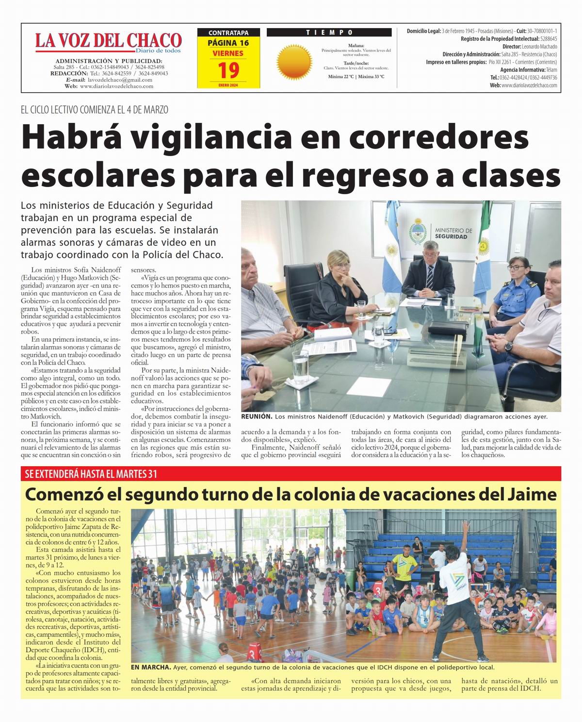 Portada » Tapa y Contratapa 19 de enero de 2024