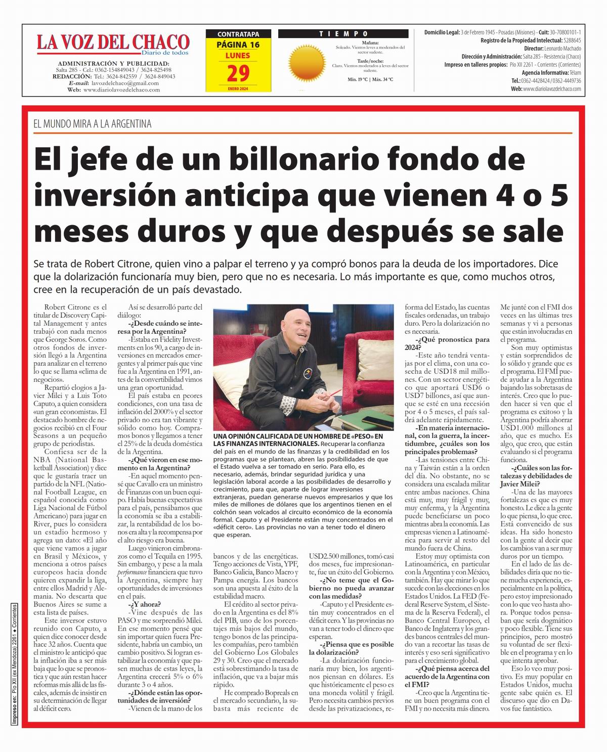 Tapa y Contratapa 29 de enero de 2024