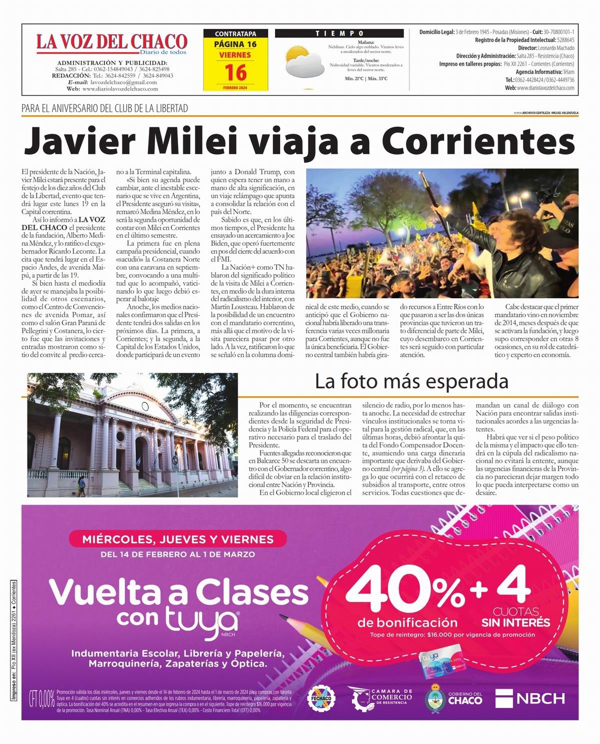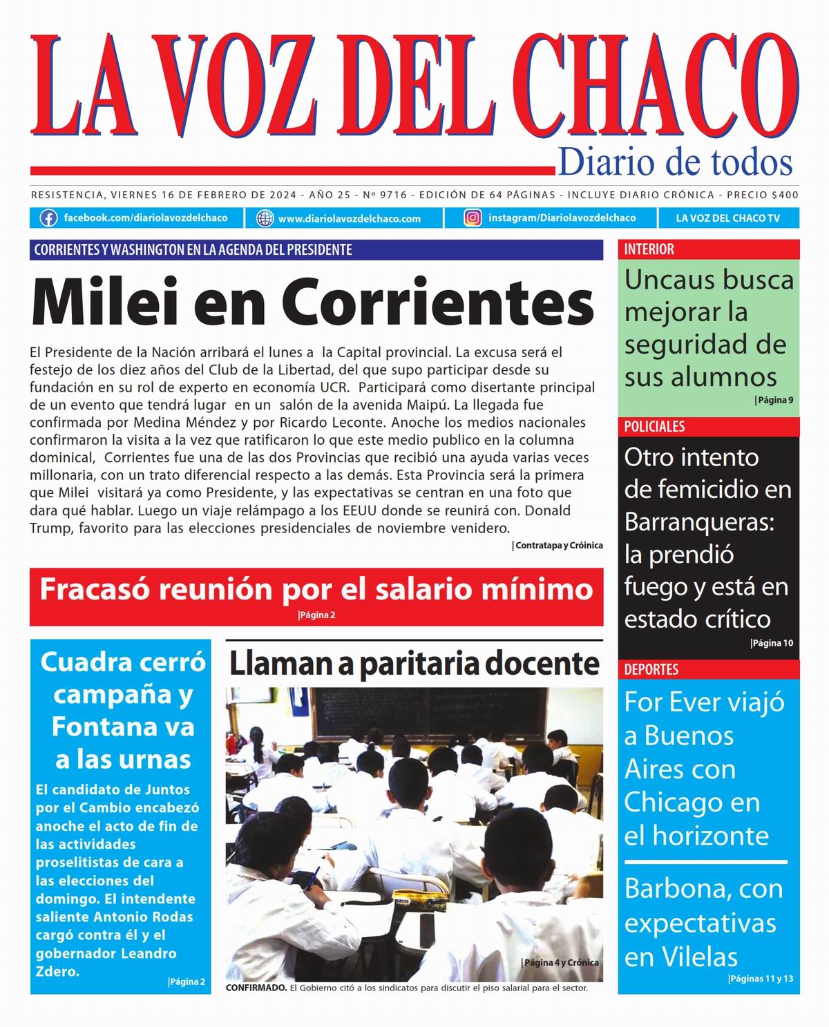Tapa y Contratapa 16 de febrero de 2024