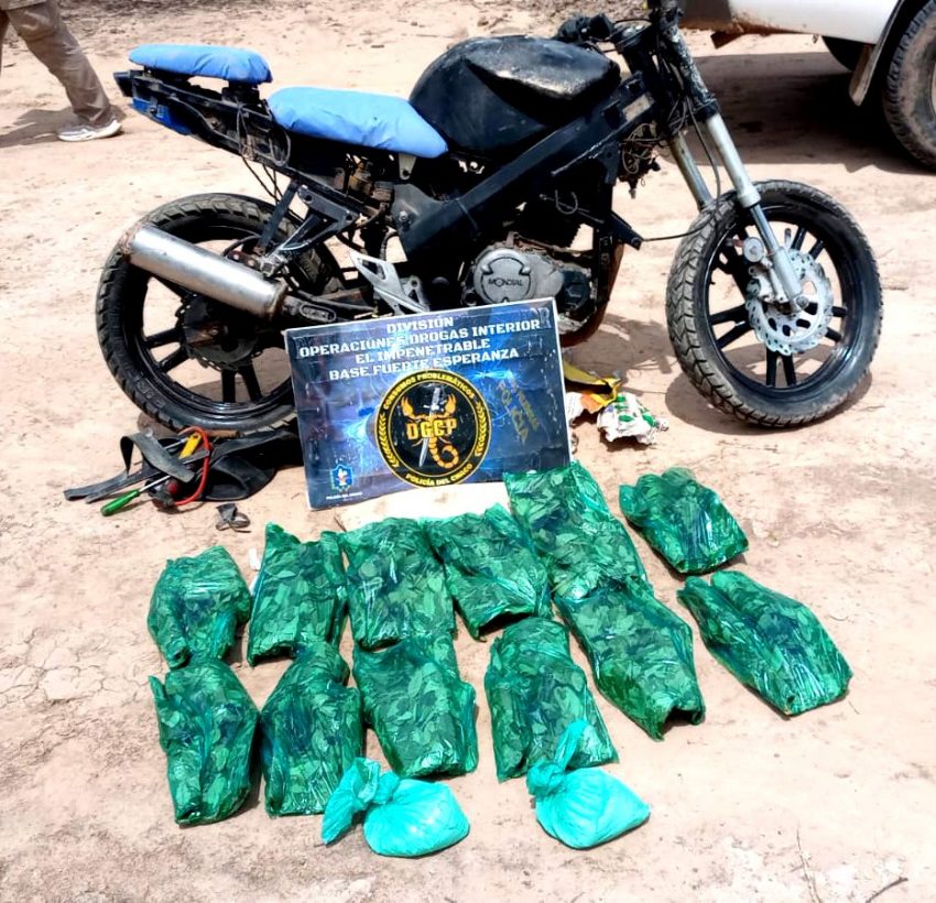 Luego de la comunicación telefónica con Juzgado Federal Presidencia Roque Sáenz Peña, se dispuso el secuestro de la droga y de los paquetes de hojas de coca valuados en 800 mil pesos aproximadamente, y también, de la motocicleta marca Mondial 150cc., color negra, trasladando todo a la dependencia policial iniciándose actuaciones en el marco de la infracción a la Ley 23737 de Estupefacientes.