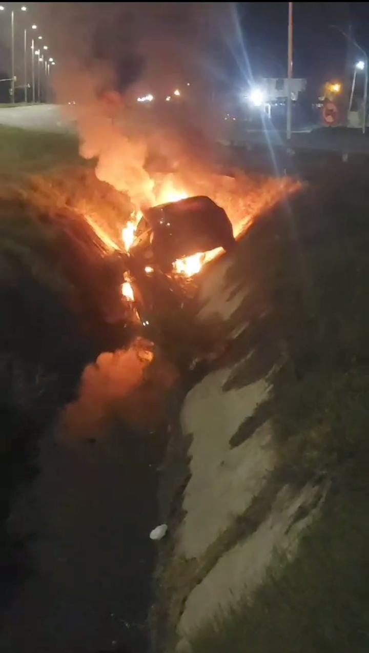 Portada » Esquivó un perro y terminó con su auto incendiado dentro de un desagüe